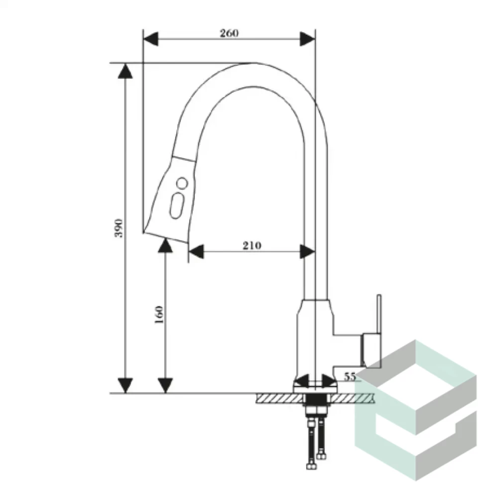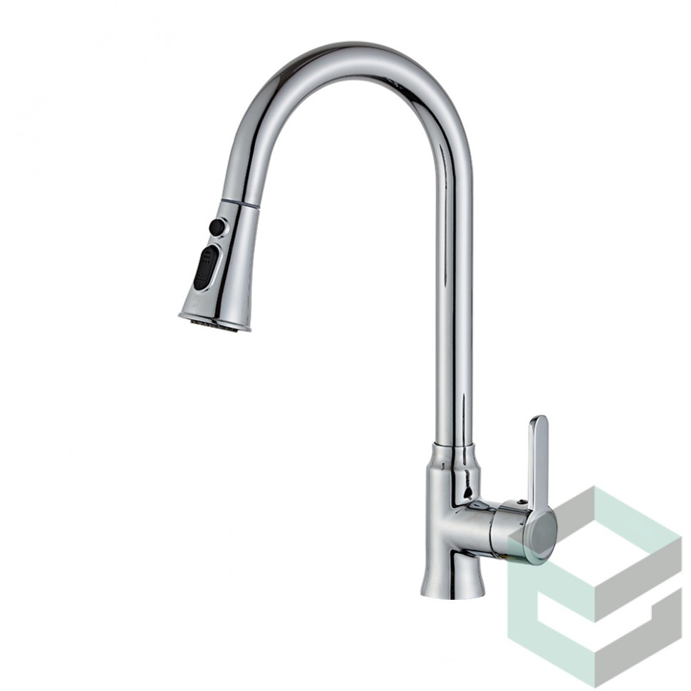 Описание: С высоким поворотным изливом, вытяжная лейка с переключателем душ/струя