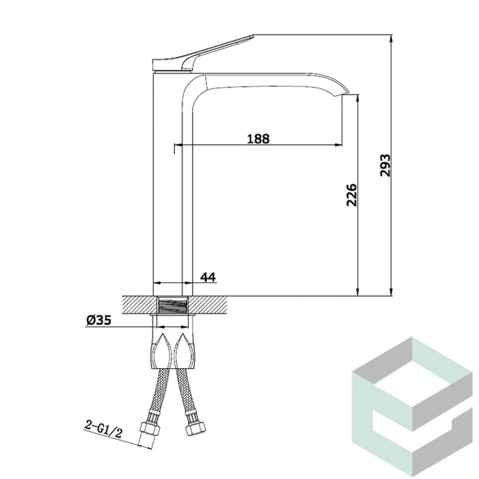 Описание: Однорычажный высокий смеситель с плоским литым изливом