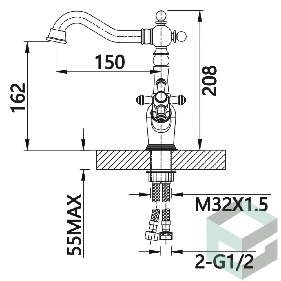 Описание: С двумя рукоятками, с коротким поворотным изливом