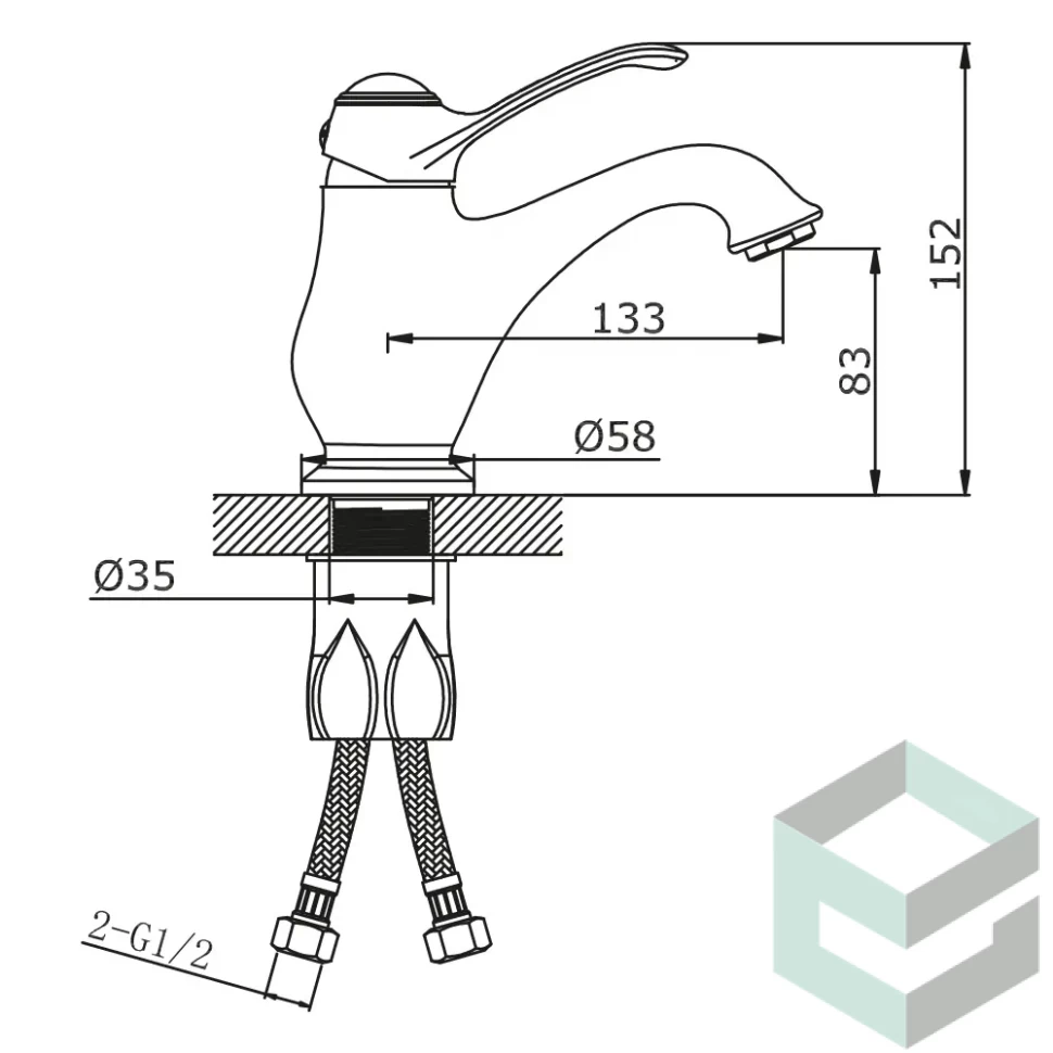В комплекте: Запасной аэратор с ключом, подводка гибкая 50 см — 2 шт, гайка прижимная, резьбовое основание, комплект прокладок