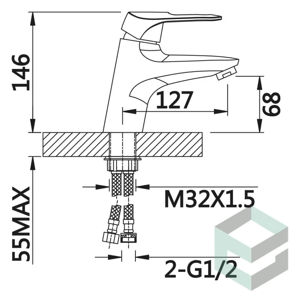 В комплекте: Запасной аэратор с ключом, подводка гибкая 50 см — 2 шт, гайка прижимная, резьбовое основание, комплект прокладок