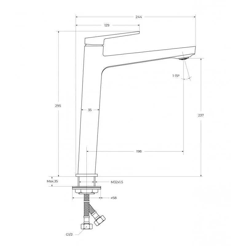Тип подводки: гибкая 1/2"