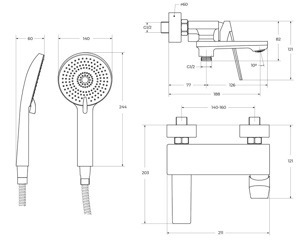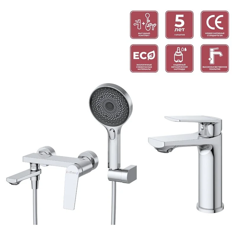 Комплект смесителей Cezares COMFORT-VD/LS-01, для ванны и душа, для раковины, хром