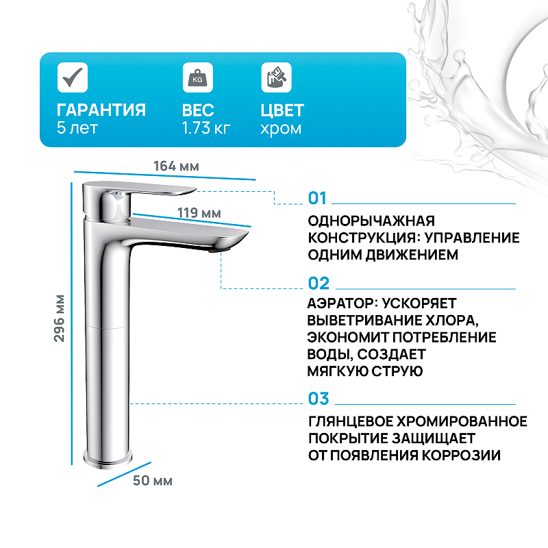 Смеситель для раковины Kaiser Cezar 05111, хром