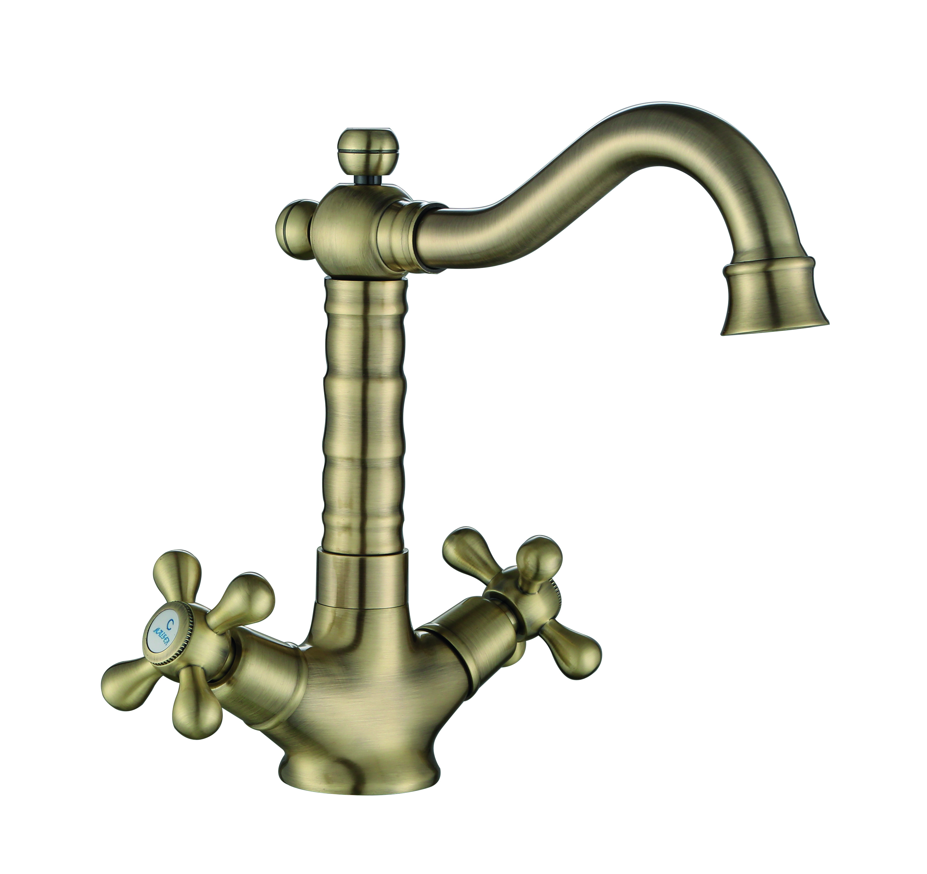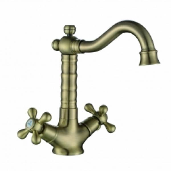Смеситель KAISER Carlson Style для раковины крест керамика (бронза)