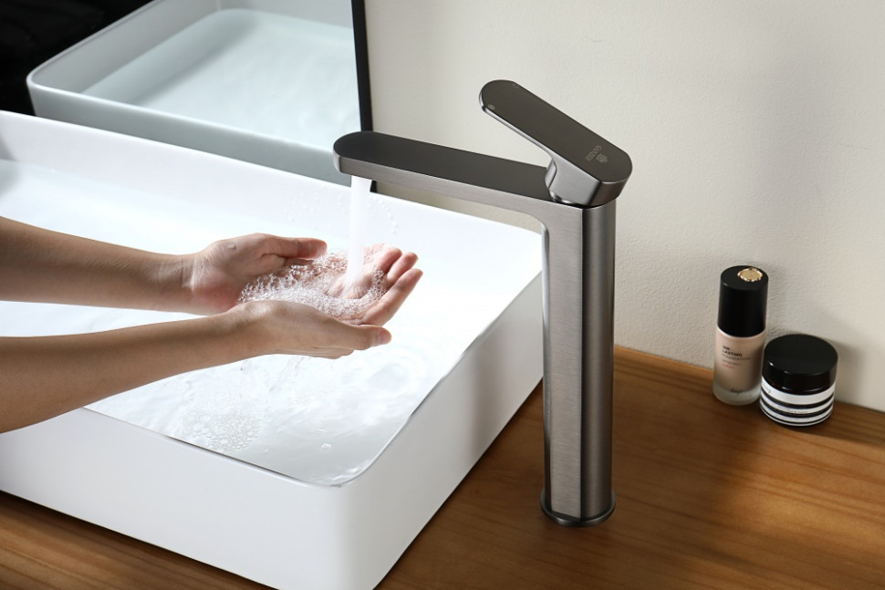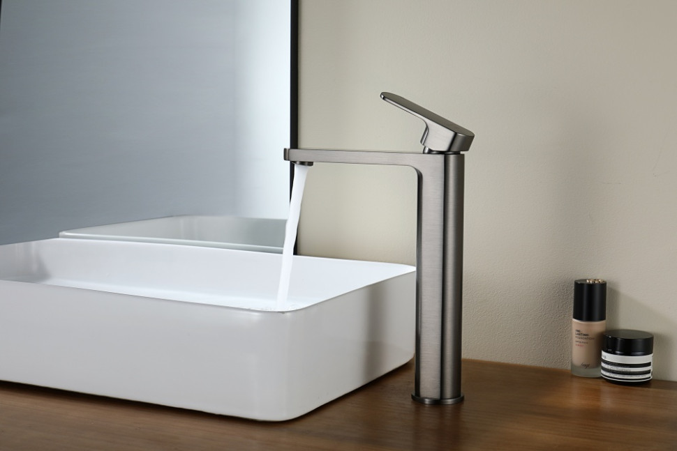 Смеситель высокий для раковины-чаши из латуни от бренда Ganzer GZ06112-Q графит