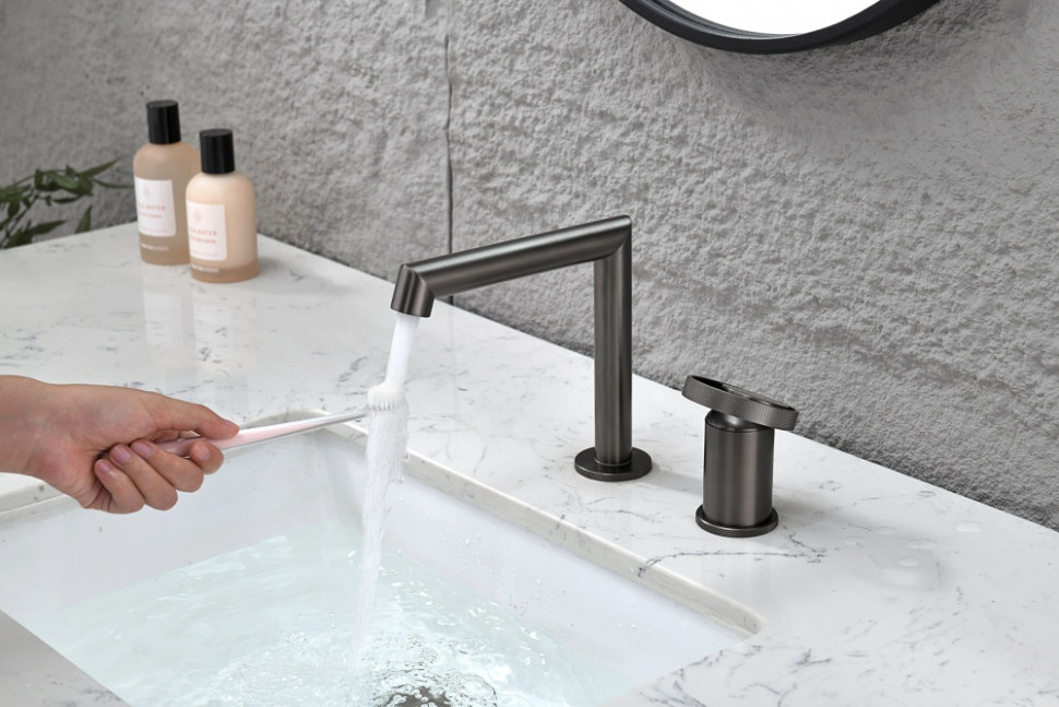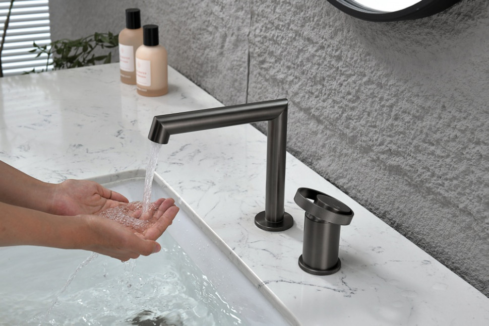 Смеситель на борт раковины 2 отверстия от бренда Ganzer GZ19114-Q графит