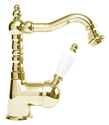 ELITE-BSM2-03/24-Bi Смеситель для биде однорычажный c донным клапаном, исполнение золото, ручка белые