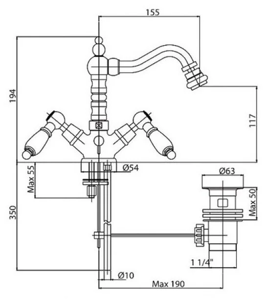 FIRST-BS2-03-M Смеситель на биде с донным клапаном, исполнение золото, ручки золото