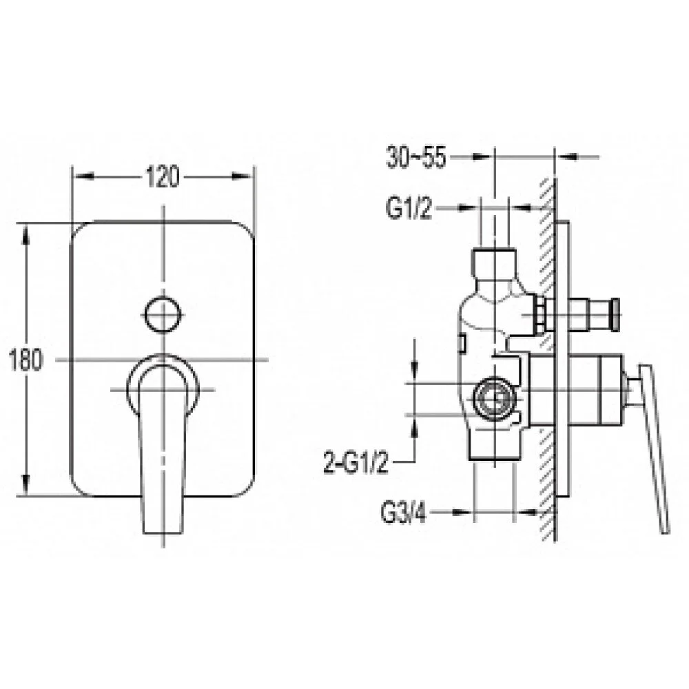 BADEN-F-VDIM-01 Встраиваемый однорычажный смеситель для душа с переключателем, хром