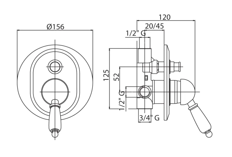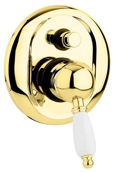 ELITE-VDIM-03/24-Bi Встраиваемый однорычажный смеситель для душа с переключателем, золото, ручки белые