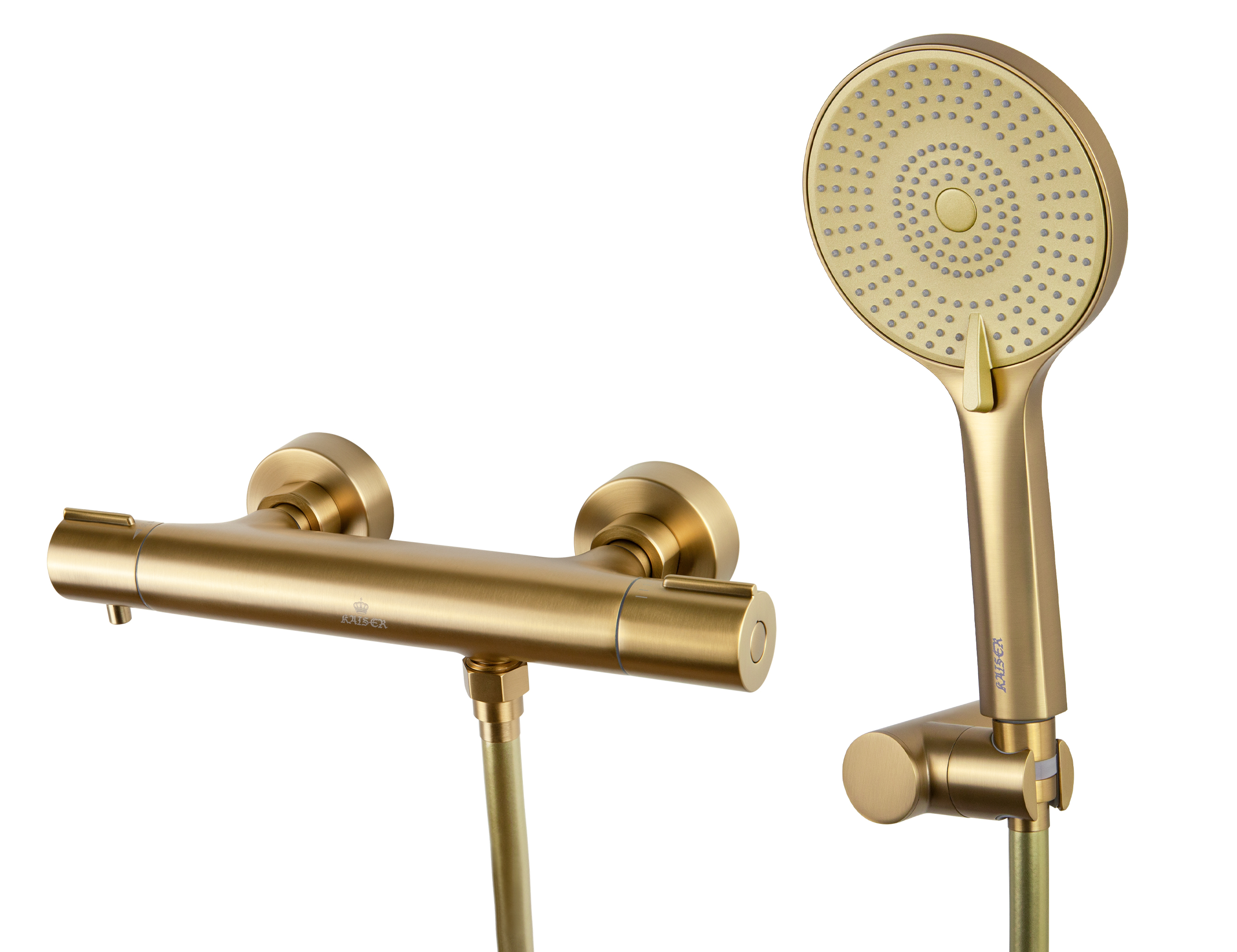 Смеситель KAISER Serio для душа с термостатом /Латунь /Шлифованное золото