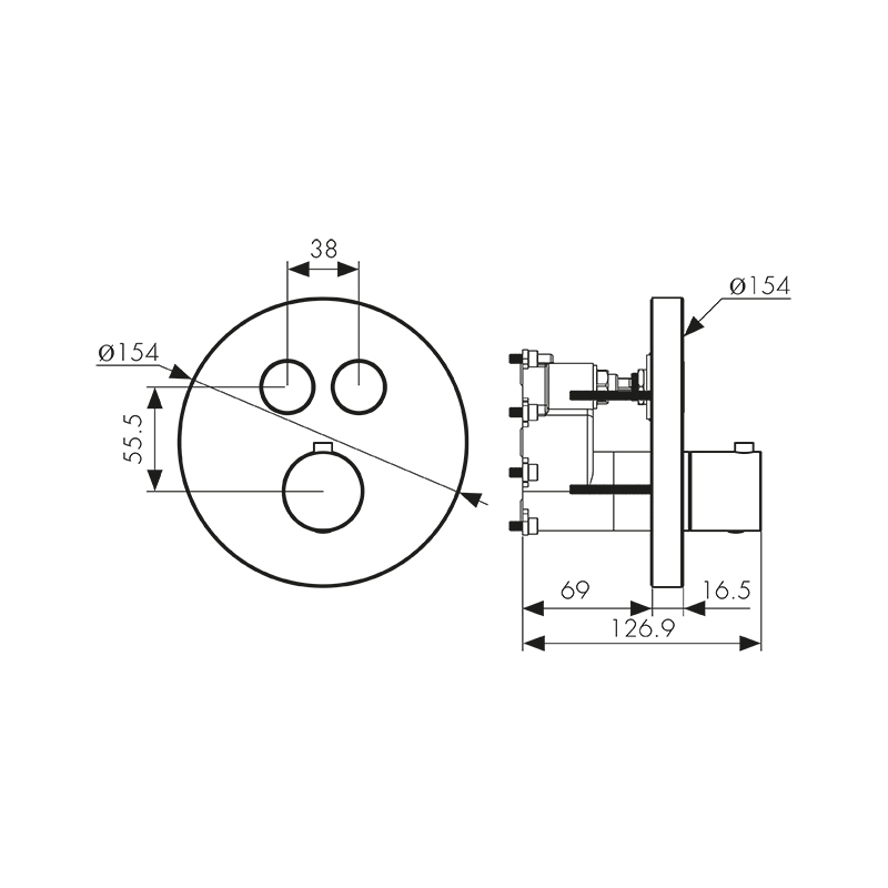 Смеситель KAISER Sano с термостатом для скрытого монтажа со скрытым блоком, 2-х режимный/Хром
