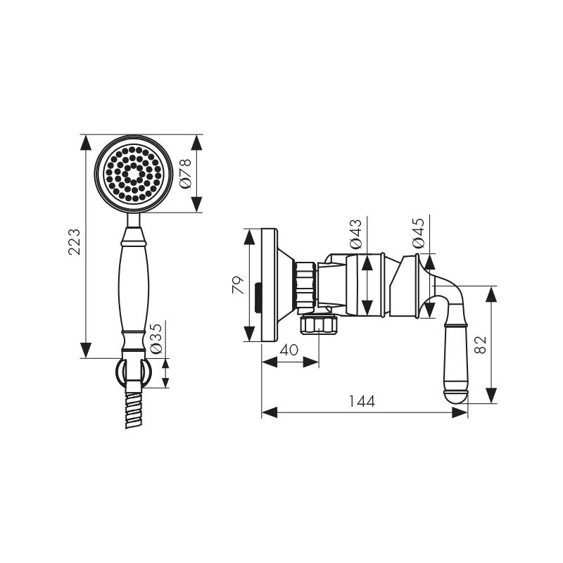 Смеситель KAISER Vincent для душа Ø35, латунь, (лейка: 1-jet, латунь) /Бронза