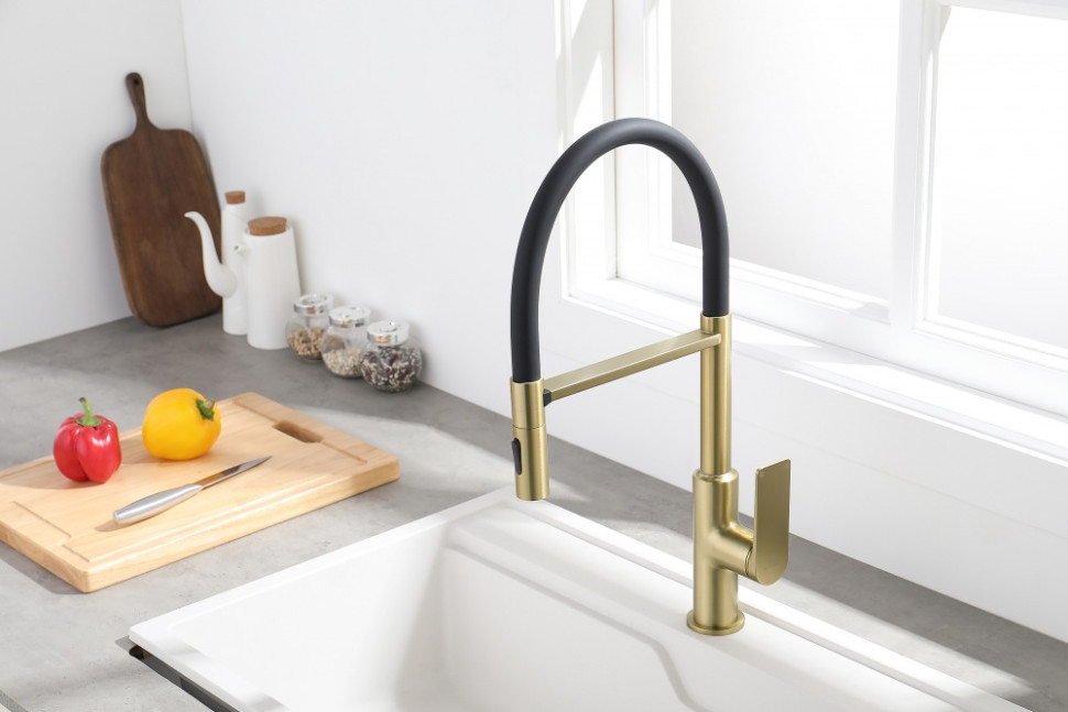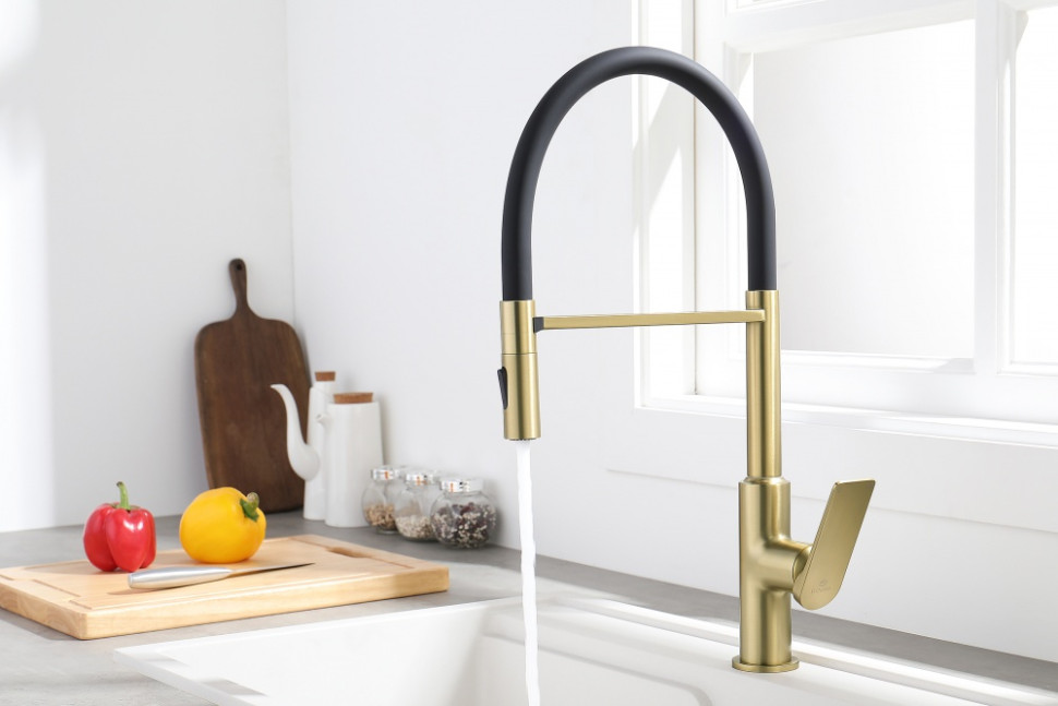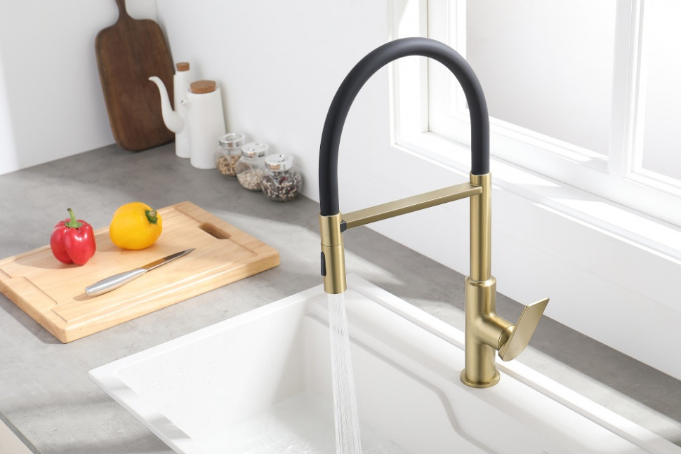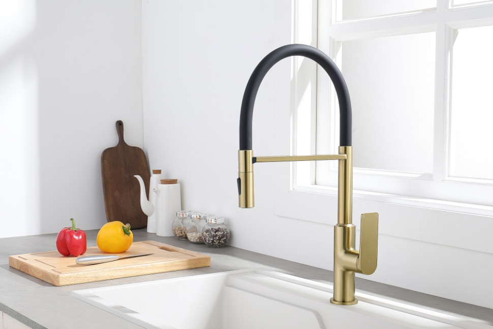 Смеситель для кухни GANZER GZ07126-S матовое золото/черный с гибким магнитным изливом
