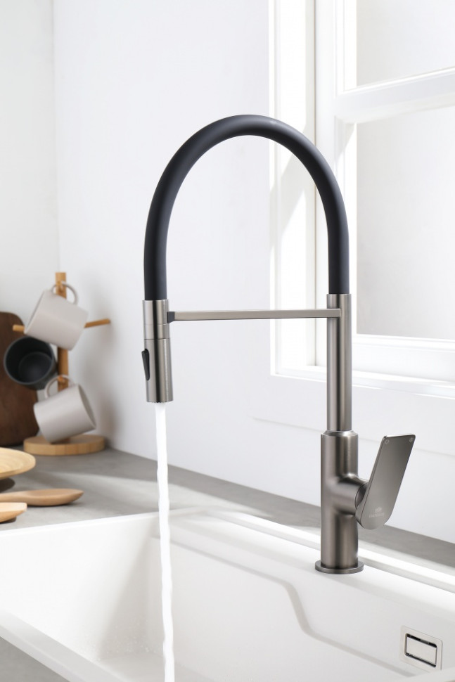 Смеситель для кухни GANZER GZ07126-Q графит/черный с гибким магнитным изливом