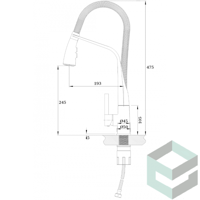 Смеситель для кухни Ganzer однорычажный с гибким изливом GZ16028 хром