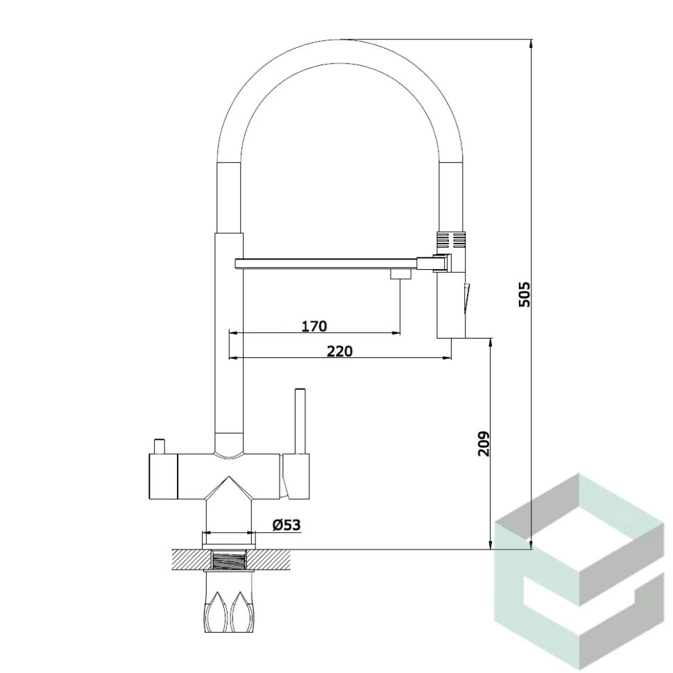 Однорычажный, с подключением к фильтру, поворотный гибкий излив для воды с переключателем душ/струя