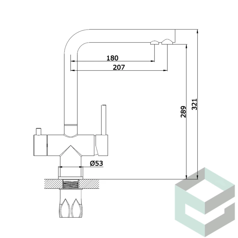 В комплекте: Запасной аэратор — 2 шт, подводка гибкая 50 см — 2 шт, гайка прижимная, резьбовое основание, комплект прокладок, переходник для подключения шланга от фильтра к питьевой воде