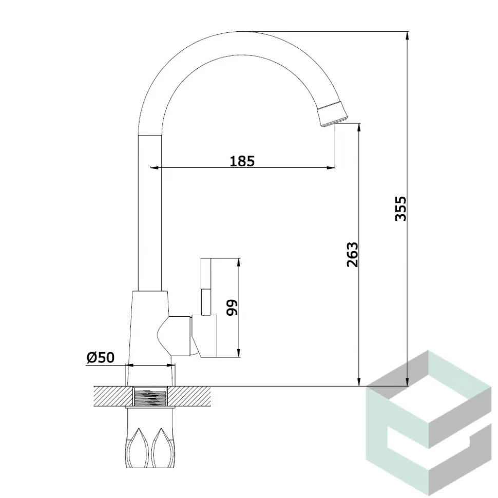 Однорычажный, высокий поворотный излив