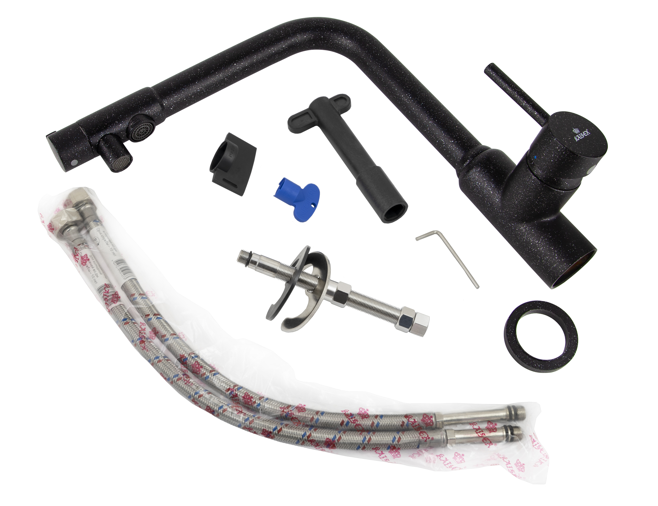 Смеситель KAISER Teka кухня Ø35, однорукий, боковой под фильтр (чёрный мрамор)
