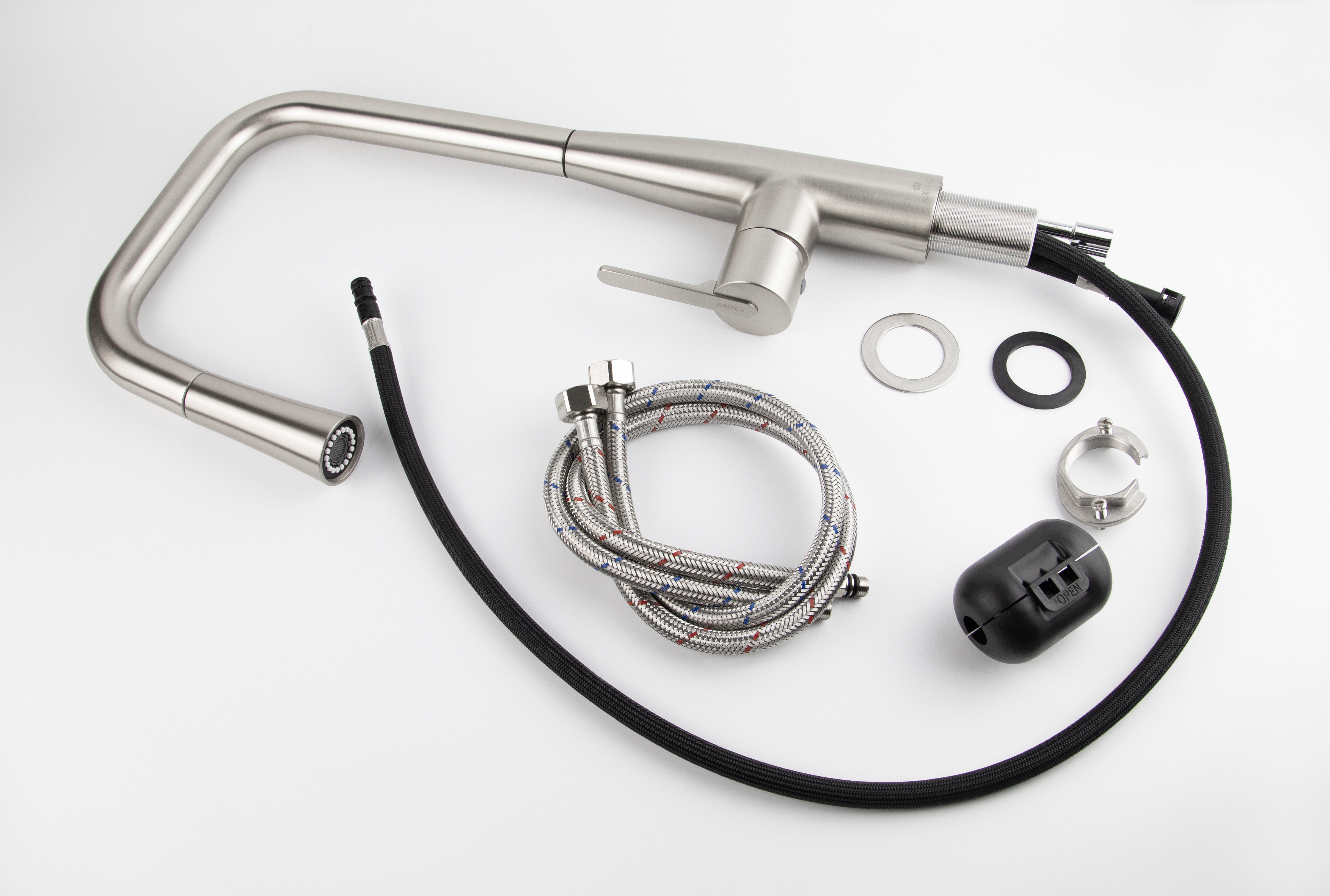 Смеситель KAISER Claro для кухни с вытяжной лейкой Ø35 /Латунь /Серебро