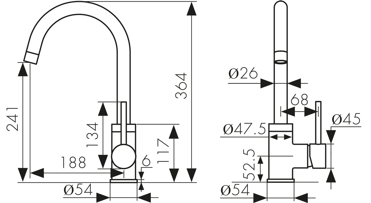 Смеситель KAISER Merkur  кухня боковой Ø35