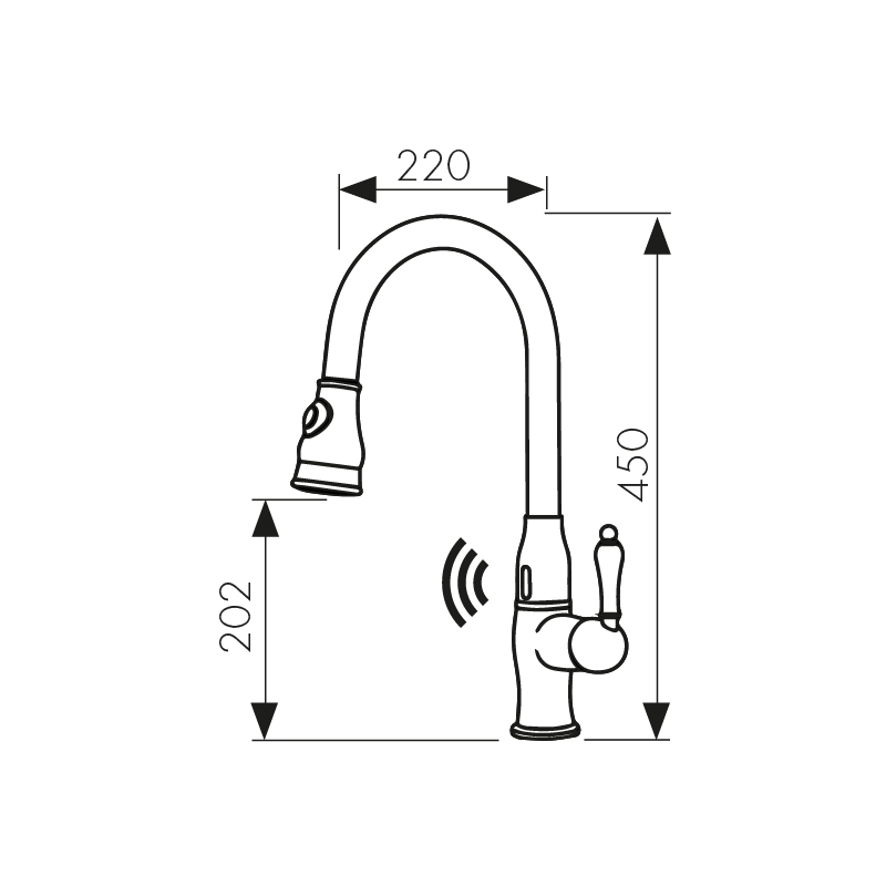 Смеситель KAISER Vincent кухня Ø35, боковой, сенсор/рукоятка с выдвижной лейкой