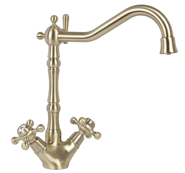 Смеситель KAISER Carlson Style кухня крест керамика под фильтр(бронза)