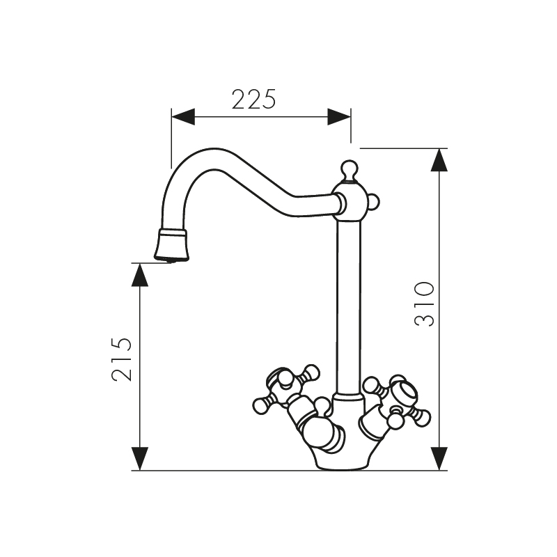 Смеситель KAISER Carlson Style кухня крест керамика под фильтр(хром)