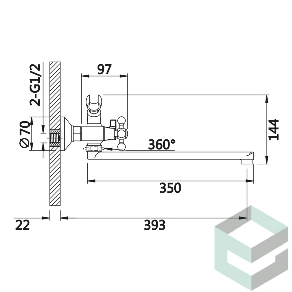 Описание: С двумя рукоятками, с плоским длинным поворотным изливом