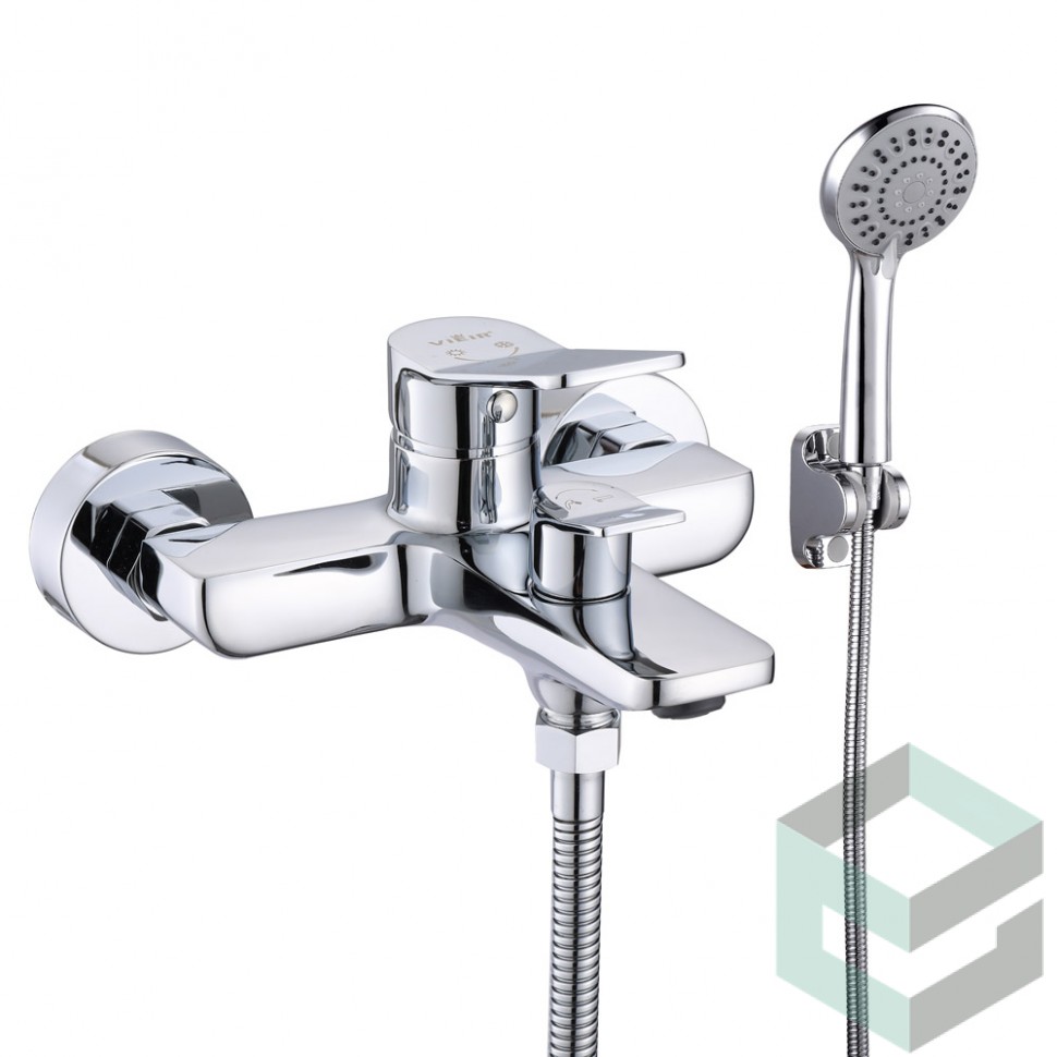 В комплекте: Душевой шланг 1,5 м (нерж.сталь), настенное крепление для лейки, душевая лейка 3-х режимная, аэратор с ключом, эксцентрик — 2 шт, отражатель — 2 шт, комплект прокладок