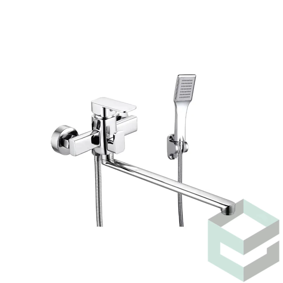 В комплекте: Душевой шланг 1,5 м (нерж.сталь), настенное крепление для лейки, душевая лейка, запасной аэратор с ключом, эксцентрик — 2 шт, отражатель — 2 шт, комплект прокладок