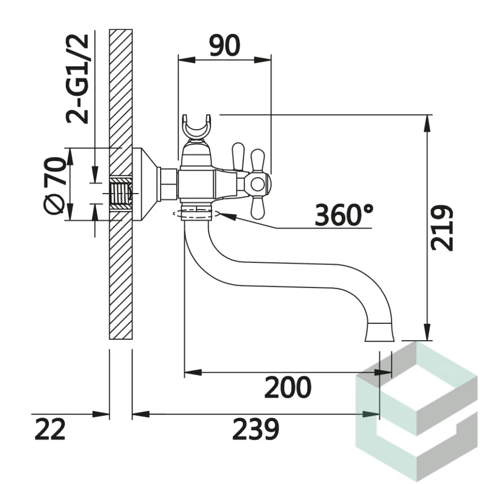 Описание: С двумя рукоятками, с поворотным изливом, короткий