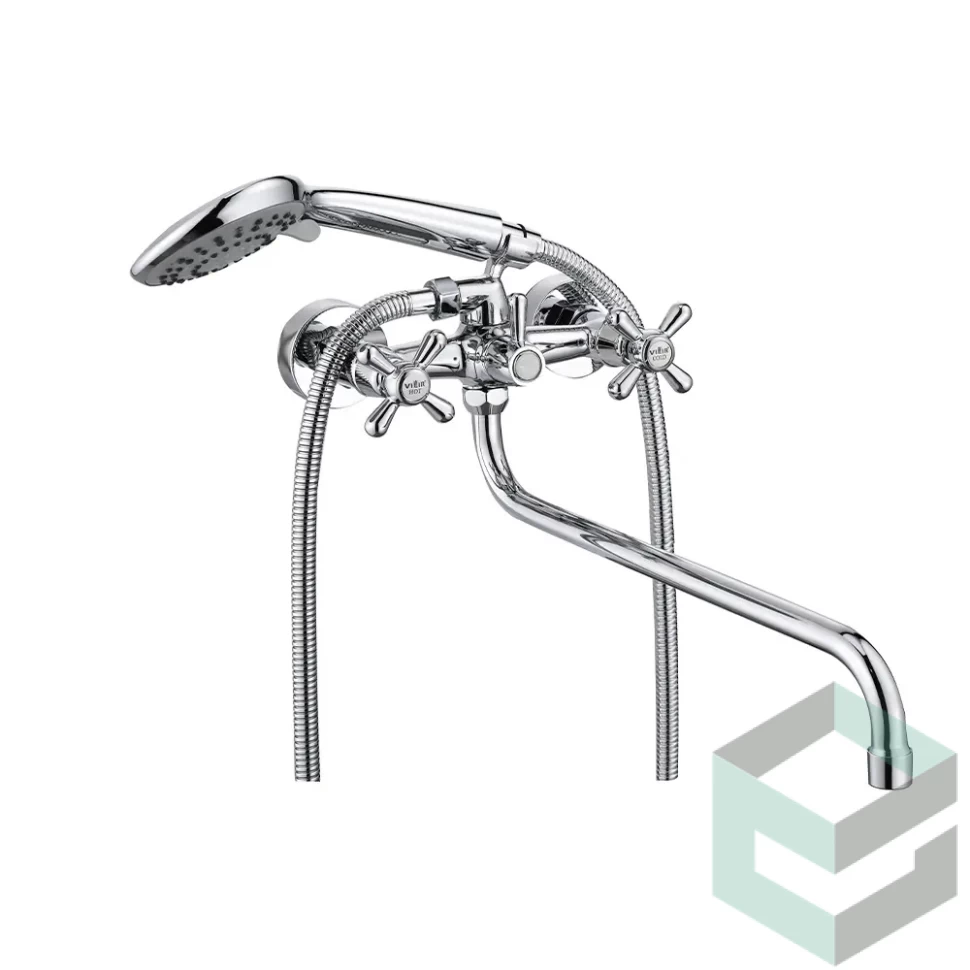 В комплекте: Душевой шланг 1,5 м (нерж.сталь), крепление для лейки, душевая лейка 3-х режимная, запасной аэратор с ключом, эксцентрики — 2 шт, отражатель — 2 шт, комплект прокладок