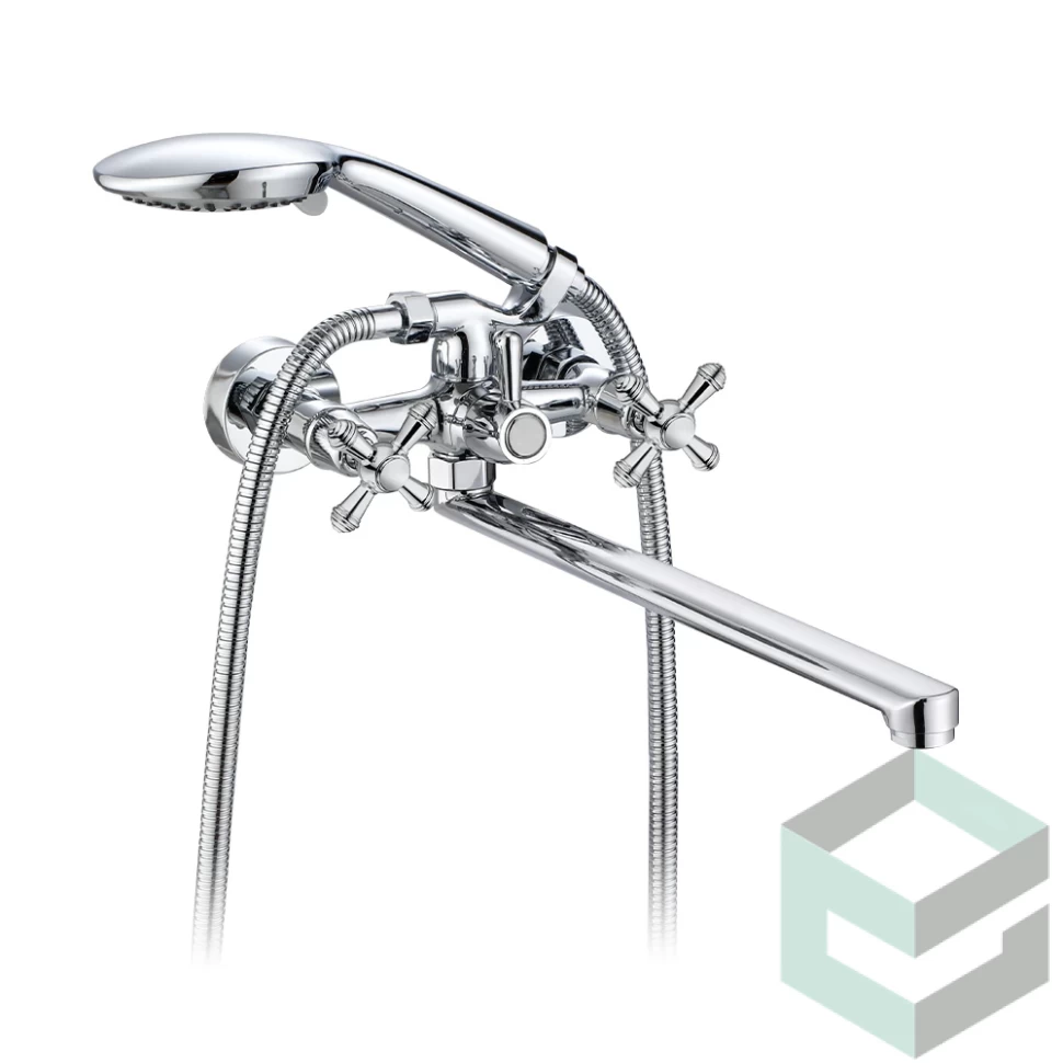 В комплекте: Душевой шланг 1,5 м (нерж.сталь), крепление для лейки, душевая лейка 3-х режимная, запасной аэратор с ключом, эксцентрик — 2 шт, отражатель — 2 шт, комплект прокладок