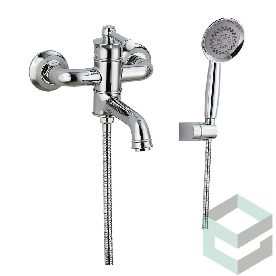 В комплекте: Душевой шланг 1,5 м (нерж.сталь), настенное крепление для лейки, душевая лейка 3-х режимная, аэратор с ключом, эксцентрик — 2 шт, отражатель — 2 шт, комплект прокладок