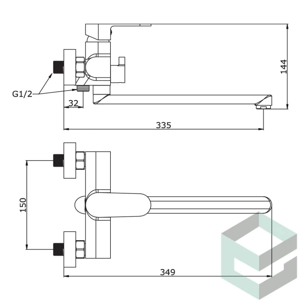 Описание: Смеситель для ванны, длинный с поворотным изливом