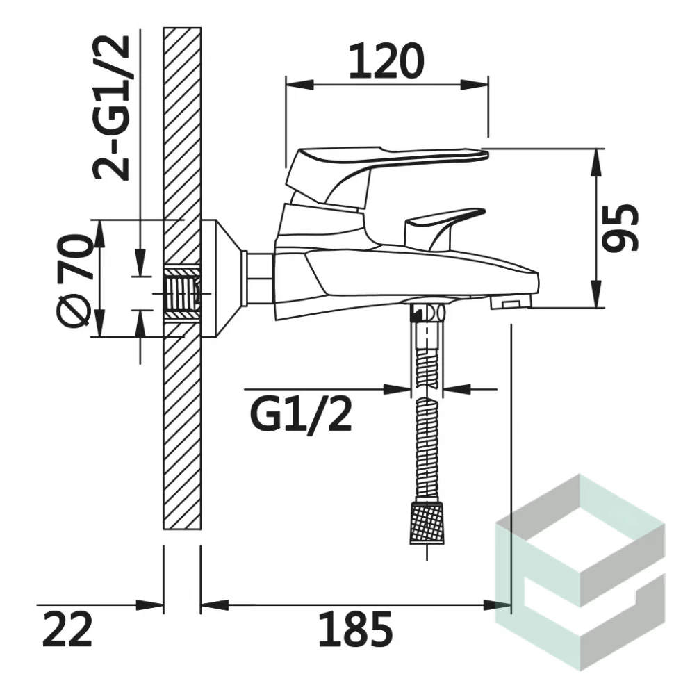 В комплекте: Душевой шланг 1,5 м (нерж.сталь), настенное крепление для лейки, душевая лейка 3-х режимная, запасной аэратор с ключом, эксцентрик — 2 шт, отражатель — 2 шт, комплект прокладок