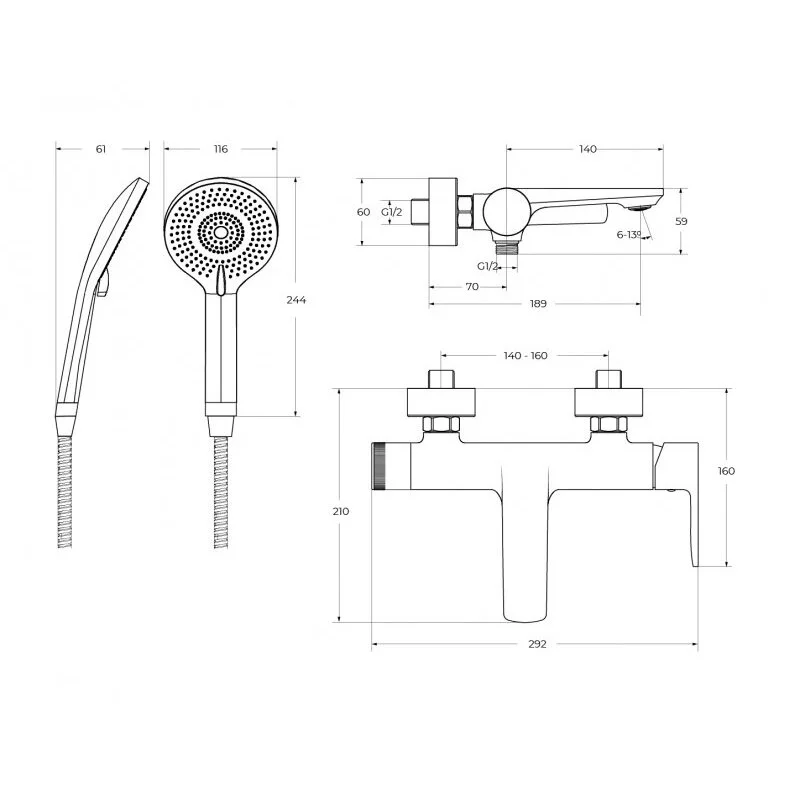 LUX-VD-01 Смеситель для ванны и душа однорычажный в комплекте с ручным душем, шлангом и держателем, хром