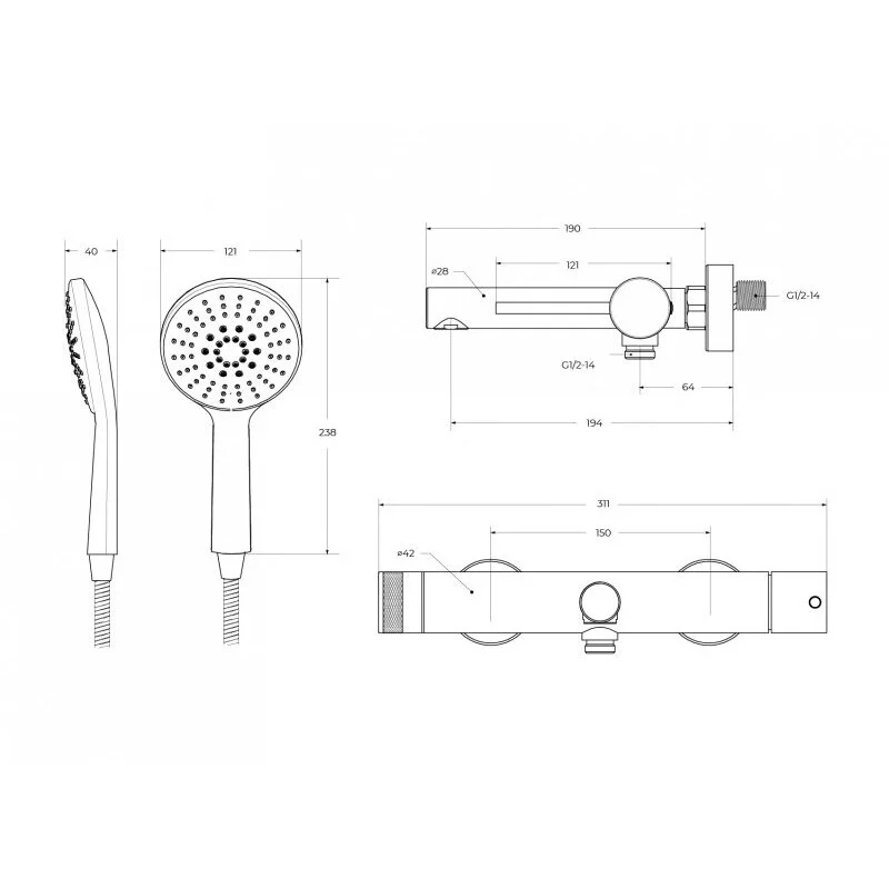 RELAX-VD-01 Смеситель для ванны и душа однорычажный в комплекте с ручным душем, шлангом и держателем, хром