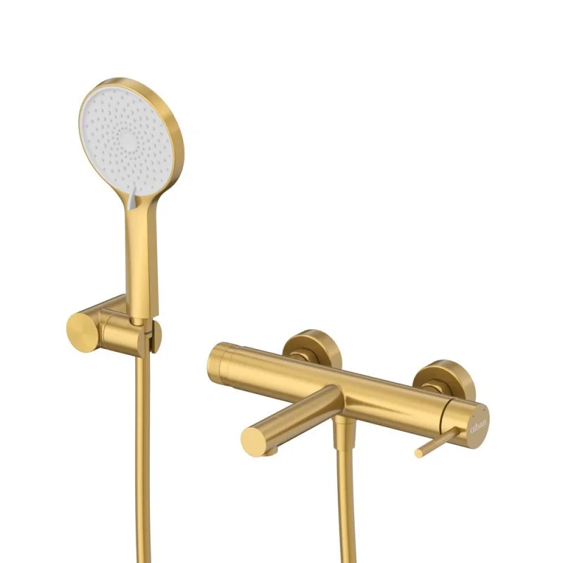 RELAX-VD-BORO Смеситель для ванны и душа однорычажный в комплекте с ручным душем, шлангом и держателем, брашированное золото
