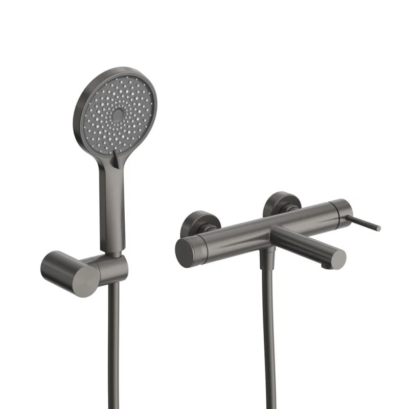 RELAX-VD-GM Смеситель для ванны и душа однорычажный в комплекте с ручным душем, шлангом и держателем, оружейная сталь