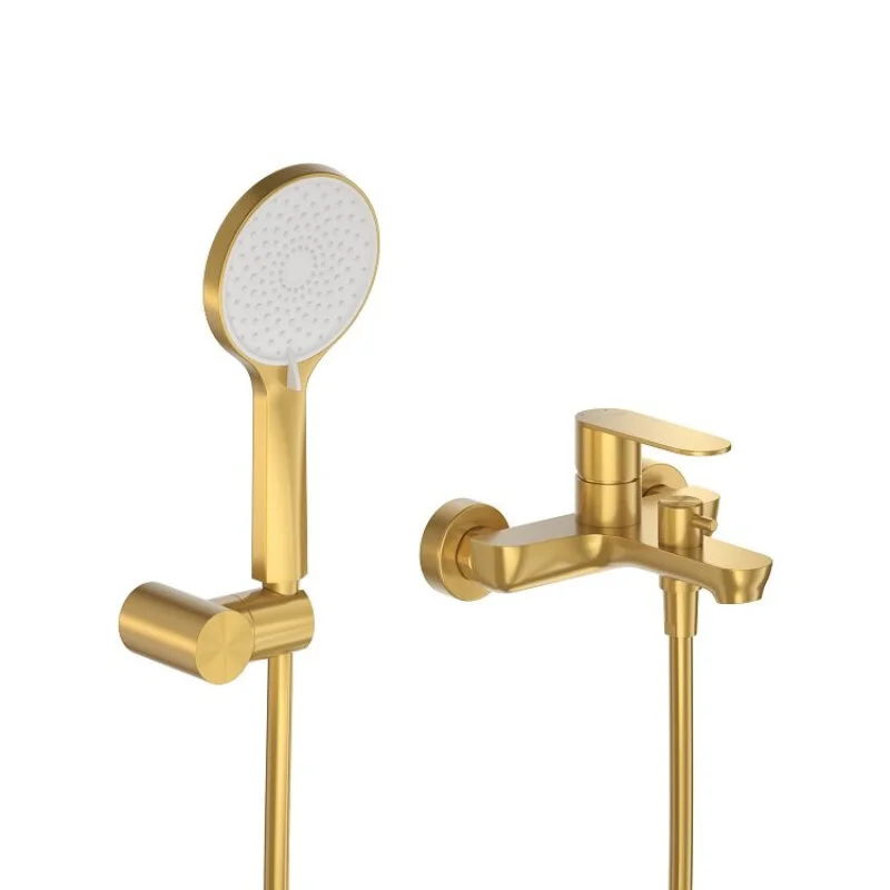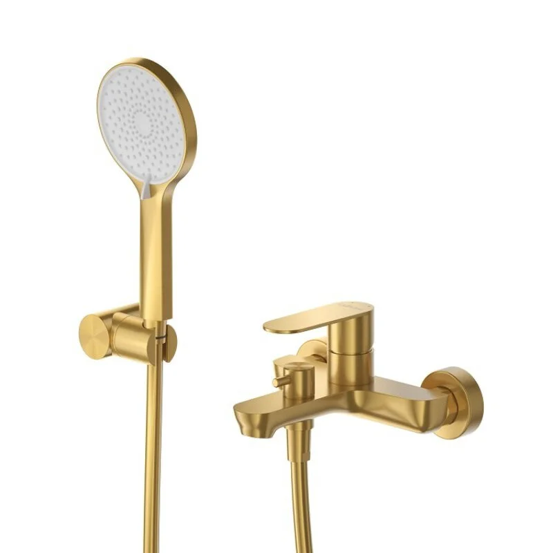 STYLUS-VD-BORO Смеситель для ванны и душа однорычажный в комплекте с ручным душем, шлангом и держателем, брашированное золото