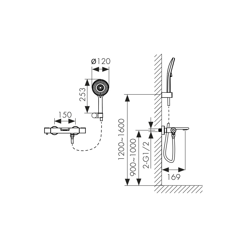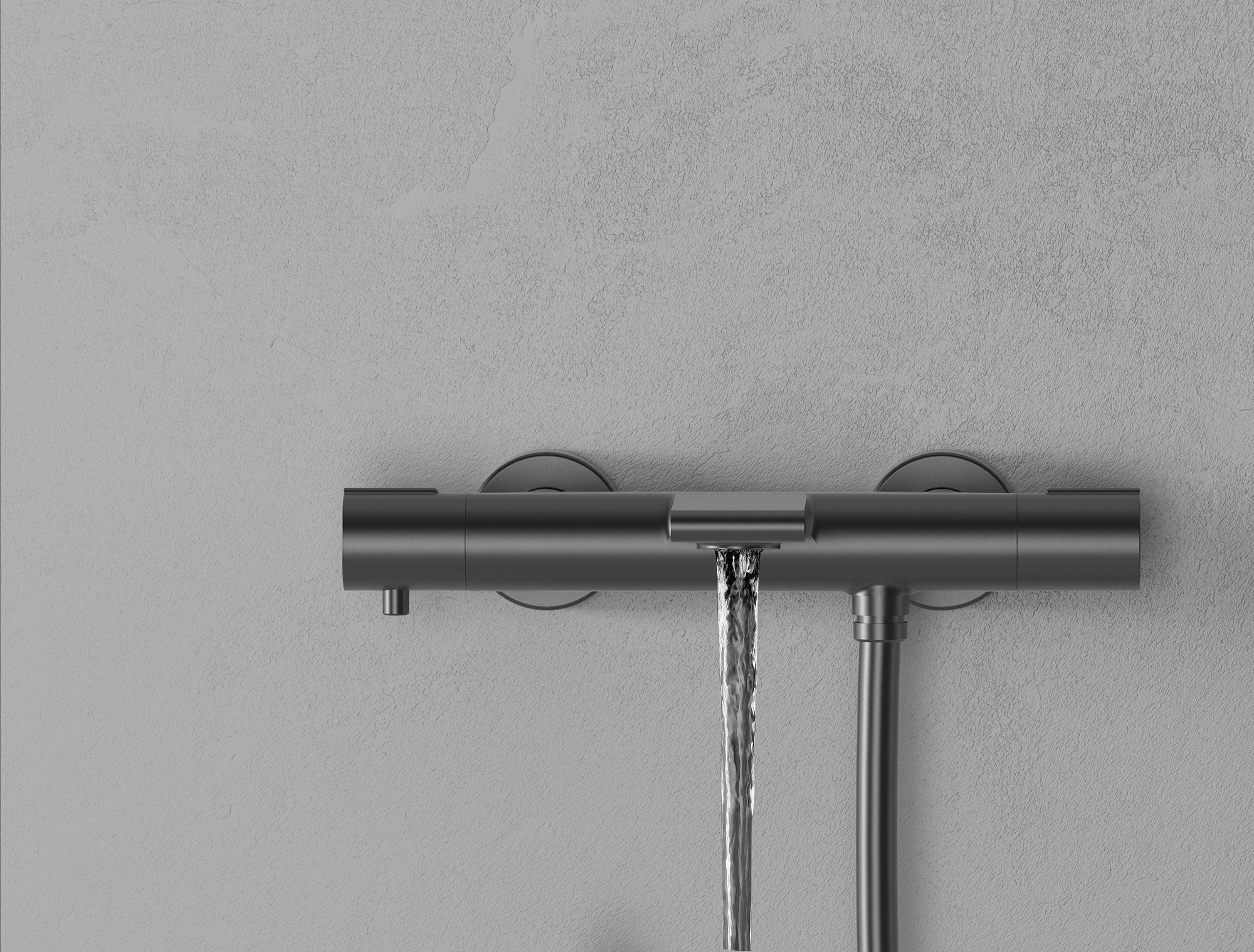Смеситель для ванны с термостатом KAISER Serio 05322-15, вороненая сталь