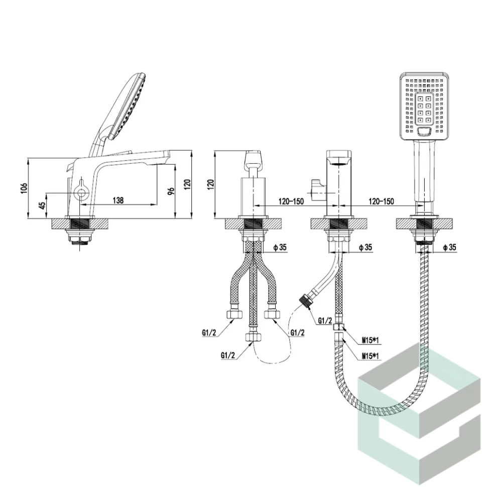 Смеситель на борт ванны с лейкой и шлангом Vieir V333532 хром
