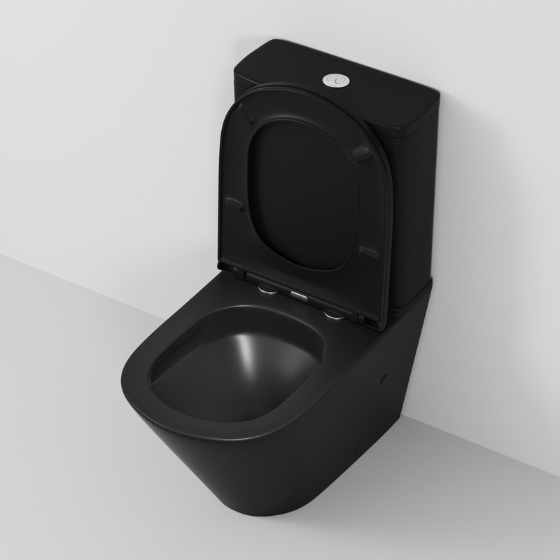 Унитаз напольный Grossman GR-4449BMSQ безободковый, черный матовый с тонкой крышкой, микролифт, смыв торнадо