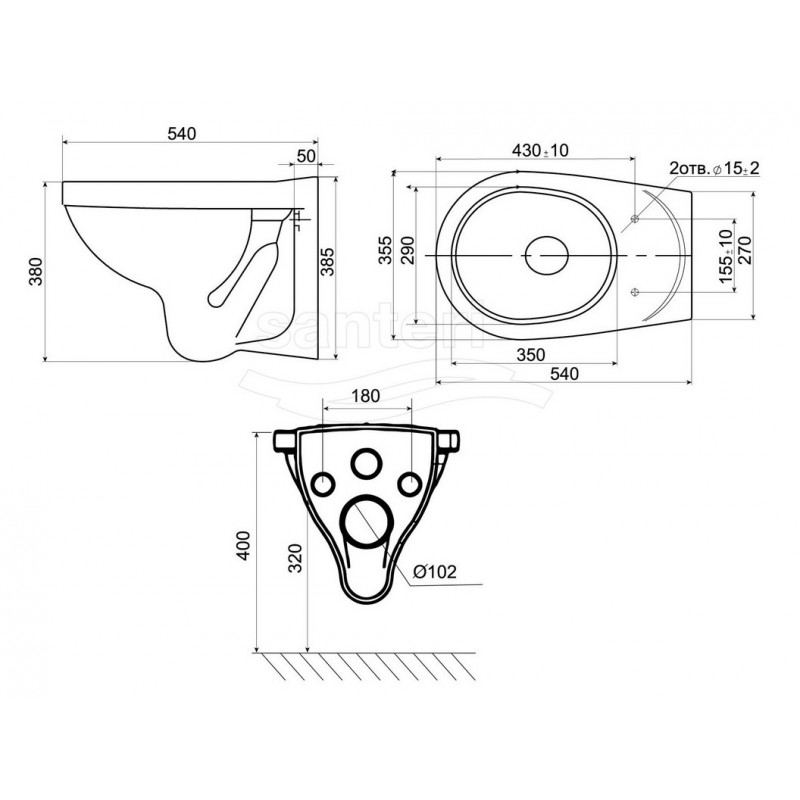 Унитаз подвесной SANTERI АЛЬФА, сид. ПП, Soft Close(ВОРОТЫНСК)