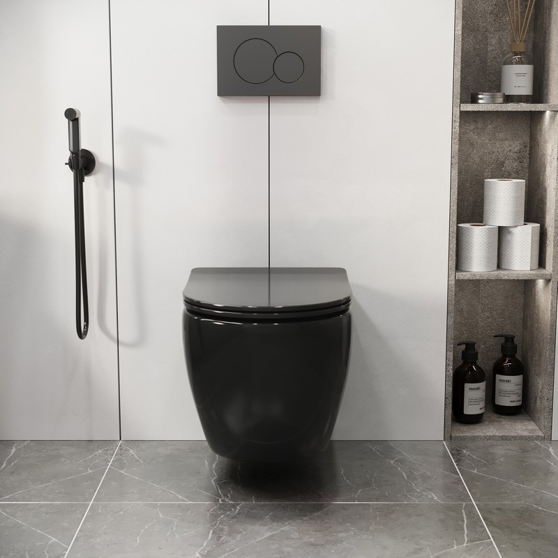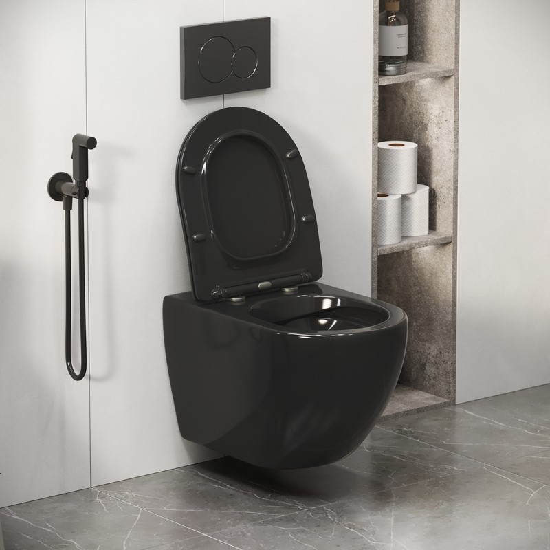 Унитаз подвесной Grossman Color GR-4411BS безободковый, черный с тонкой крышкой, микролифт