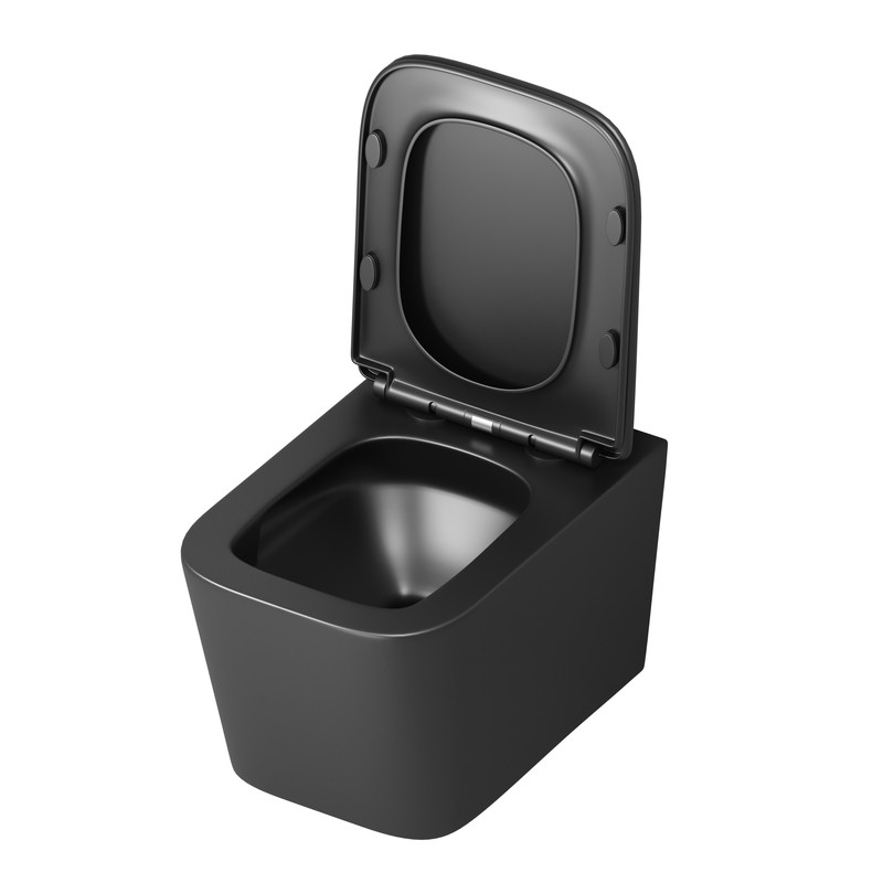 Унитаз подвесной Grossman GR-4404BMSQ безободковый, черный матовый с тонкой крышкой, микролифт, смыв торнадо